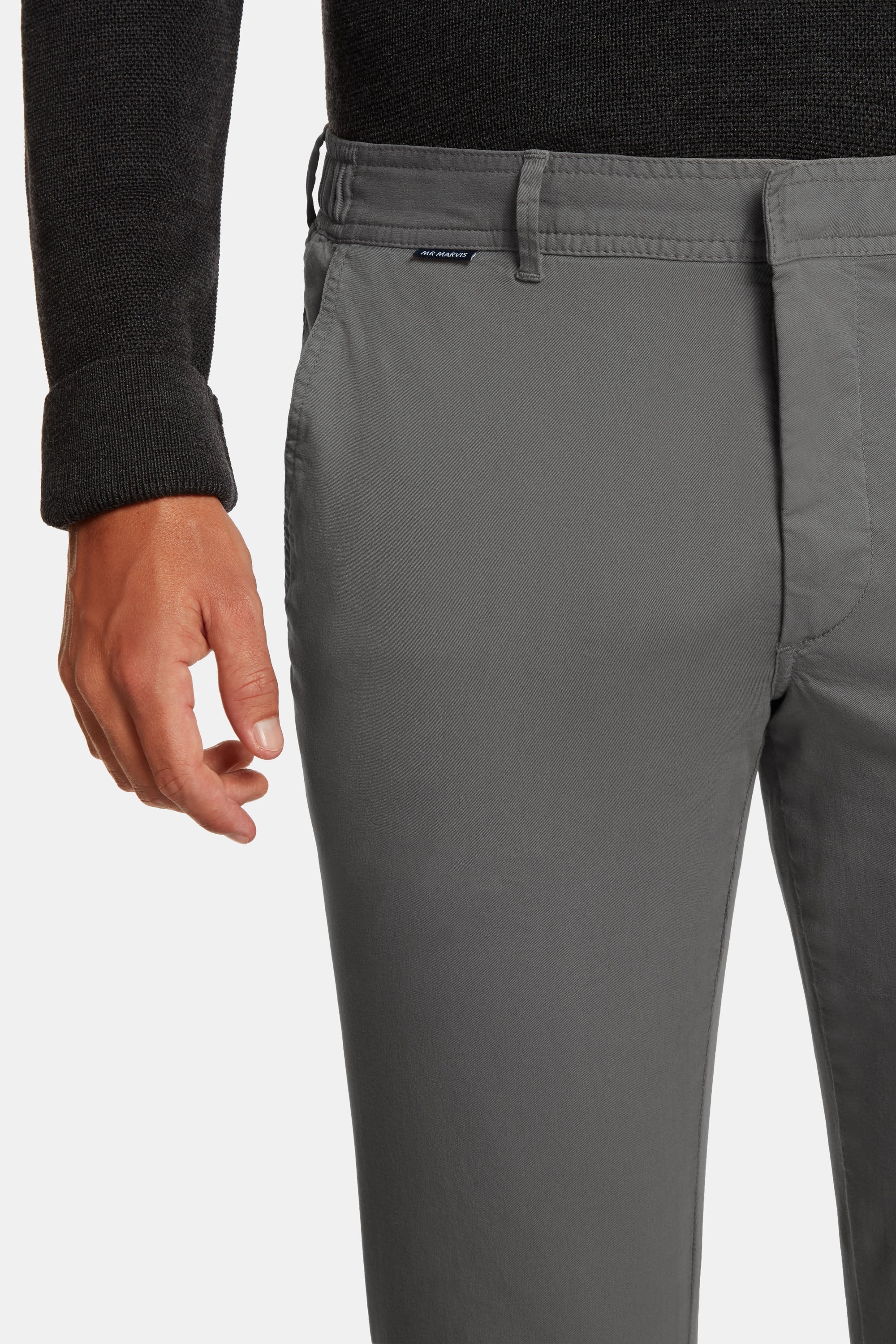 Meet The Newmans long: MR MARVIS' mid grey stretch cotton men's trousers. With The Longs, you are ready for any season.