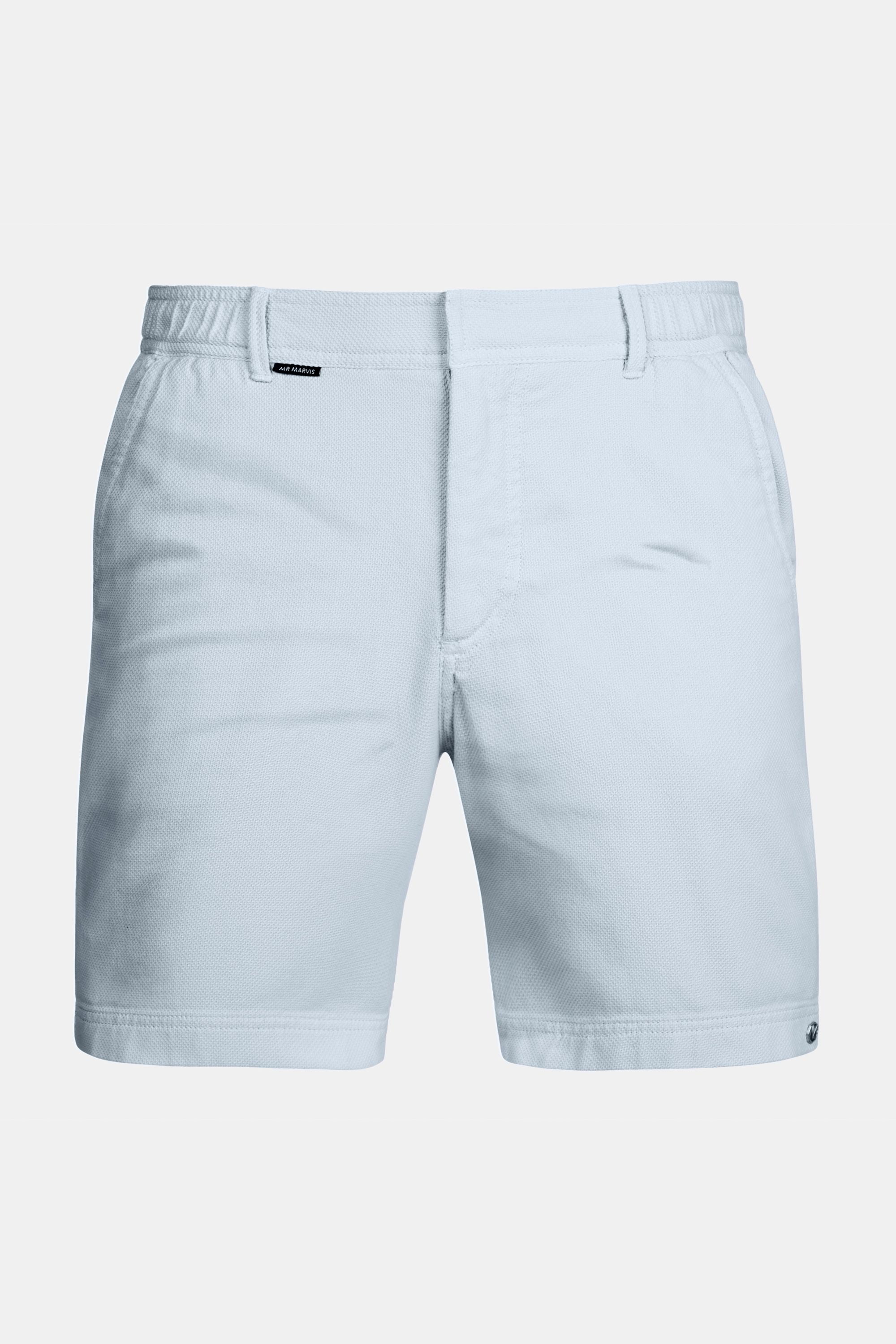 You should not have any competitor on the streets when wearing these shorts. MR MARVIS' light blue piqué men's shorts - made out of airy 100% organic cotton fabric with a textured waffle look - go perfectly with white and dark blue. For a smart summer look, pair the Avenues with airy cotton slip-ons.